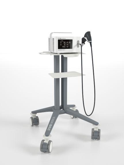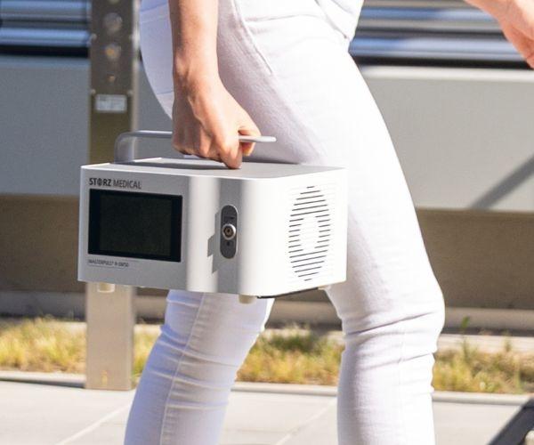 MASTERPULS R-SW 50 utökar sömlöst vår framgångsrika MASTERPULS-serie och kombinerar den beprövade tillförlitligheten och prestandan från STORZ med en fräsch, modern design. Med ett praktiskt bärhandtag, lätt och kompakt konstruktion samt en intuitiv pekskärm erbjuder den enkel transport och snabb justering under behandling. R-SW 50 är ”instegsmodellen” och är det idealiska valet för mindre kliniker, behandlingsrum och för användning på språng inom idrotts- eller rehabiliteringssammanhang.